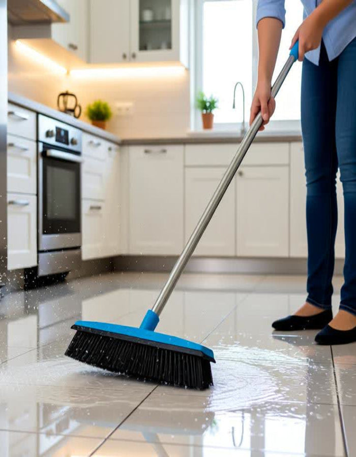 Solo enjuaga con agua y queda como nueva. No acumula bacterias ni malos olores como las escobas tradicionales.